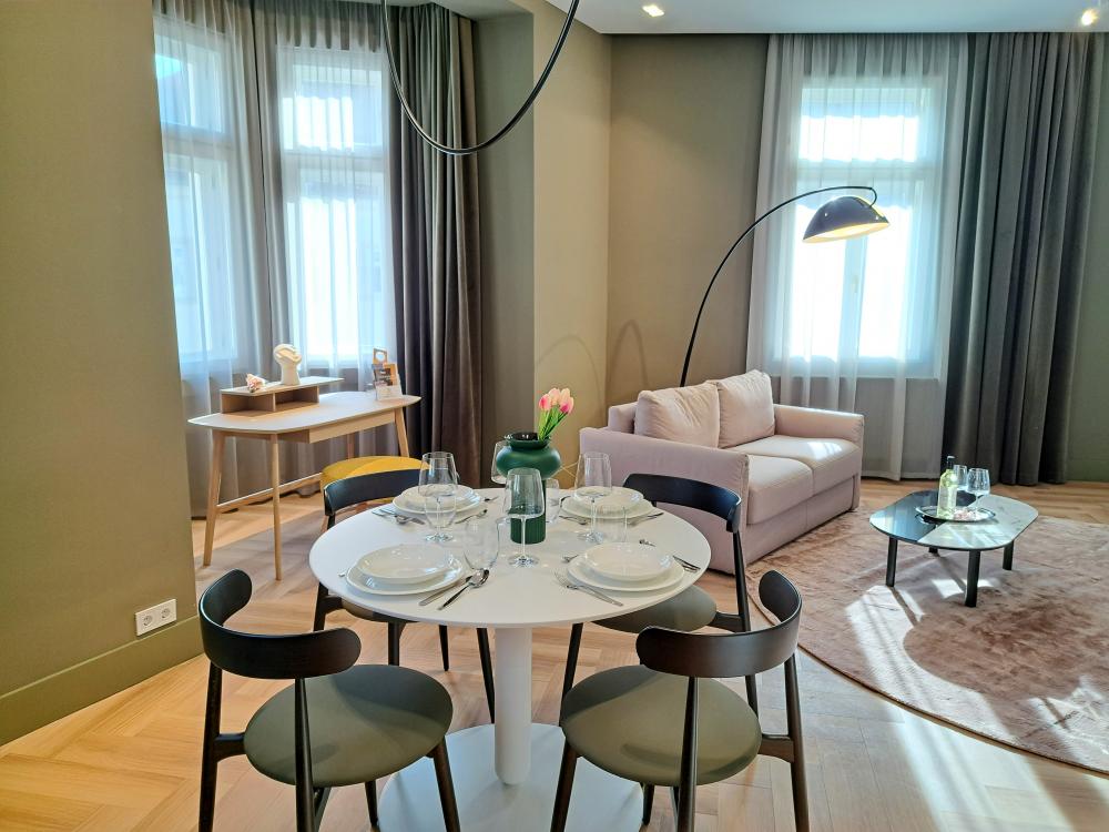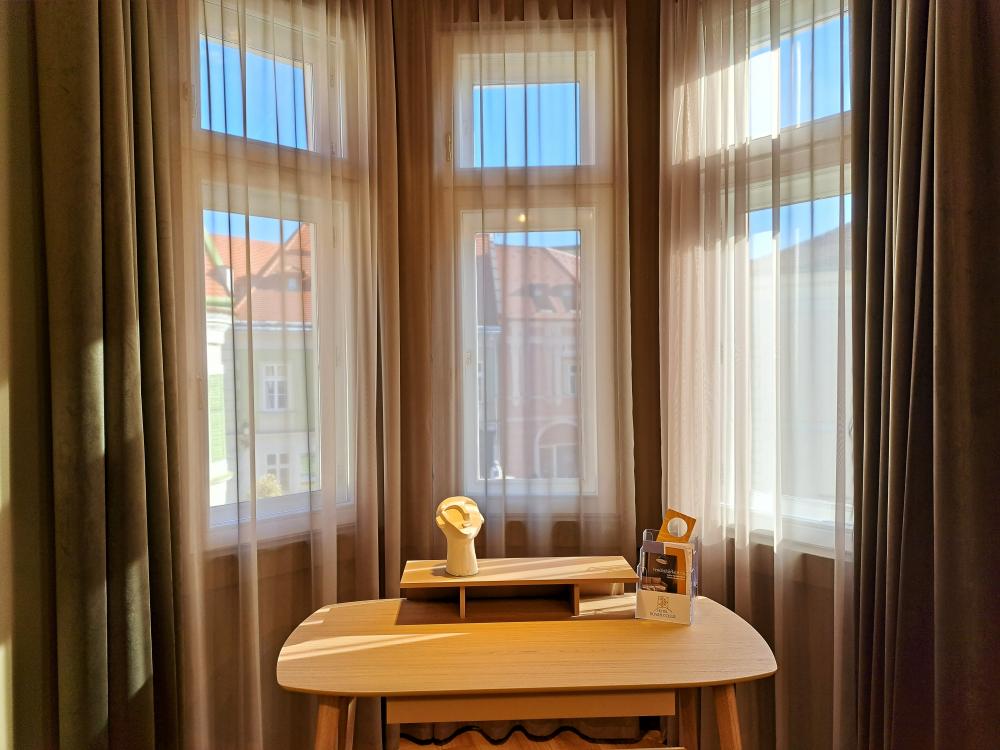 Unsere Deluxe-Suiten bieten die perfekte Umgebung für unsere Gäste zum Entspannen, Komfort und Erholung. Unsere große Suiten sind fast schon wie eine kleine Wohnungen. Es hat ein geräumiges Wohnzimmer mit geschlossenem Eckbalkon, ein separates Schlafzimmer mit eigenem Fernseher und ein Badezimmer. Im Wohnzimmer gibt es ein moderne mechanisierte Küche, einen Esstisch für sechs Personen und ein bequemes ausziehbares Sofa. Es ist eine ideale Wahl für diejenigen sein, die mit Familie oder Freunden kommen. Dank seines Designs kann es sogar ein Ort für Geschäftsverhandlungen sein. Abhängig vom Standort gibt es einen schönen Ausblick auf die romantische Mosoni-Donau-Promenade und die Fußgängerzone der historischen Altstadt.