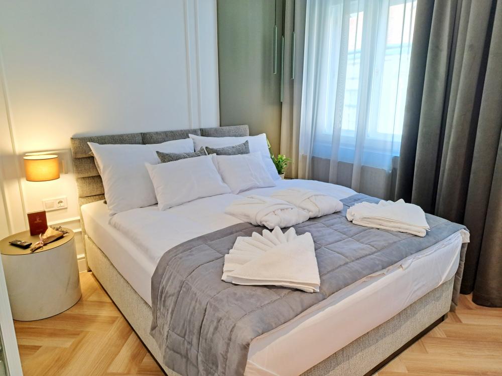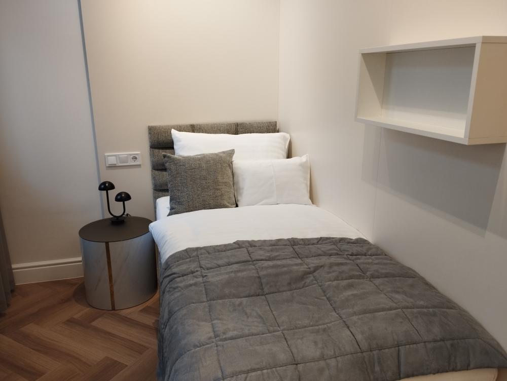 Unsere Familiensuiten bieten eine gemütliche und komfortable Unterkunft für Familien, die sich entspannen möchten. Die große Mehrraum-Suite ist geräumig und hell, dank seines besonderen Stils. Im größeren Schlafzimmer gibt es ein Doppelbett, und das kleinere hat ein Einzelbett. Das Wohnzimmer mit dem ausziehbaren Doppelschlafsofa und der modernen mechanisierten Kochecke bieten einen besonders geräumigen Platz. Es ist eine geeignete Umgebung für Familien oder für einen längeren Reisen um einen angenehmen Urlaub zu verbringen und die einzigartigen Wunder der Stadt zu entdecken. Aus dem Zimmer gibt es einen schönen Ausblick auf die Fußgängerzone der historischen Altstadt.