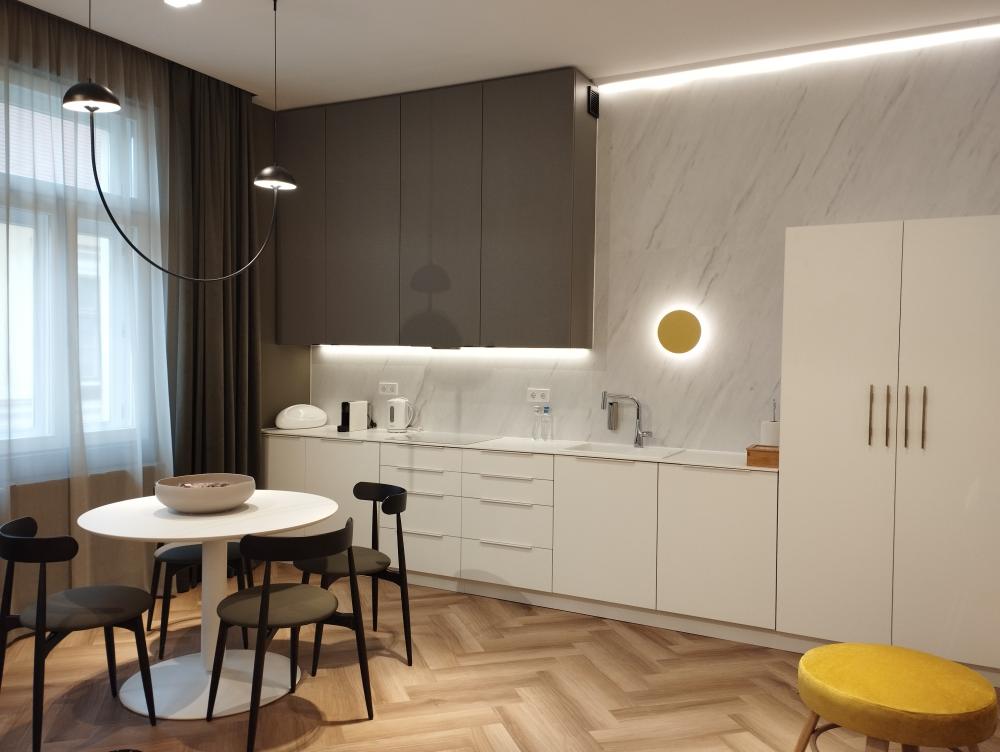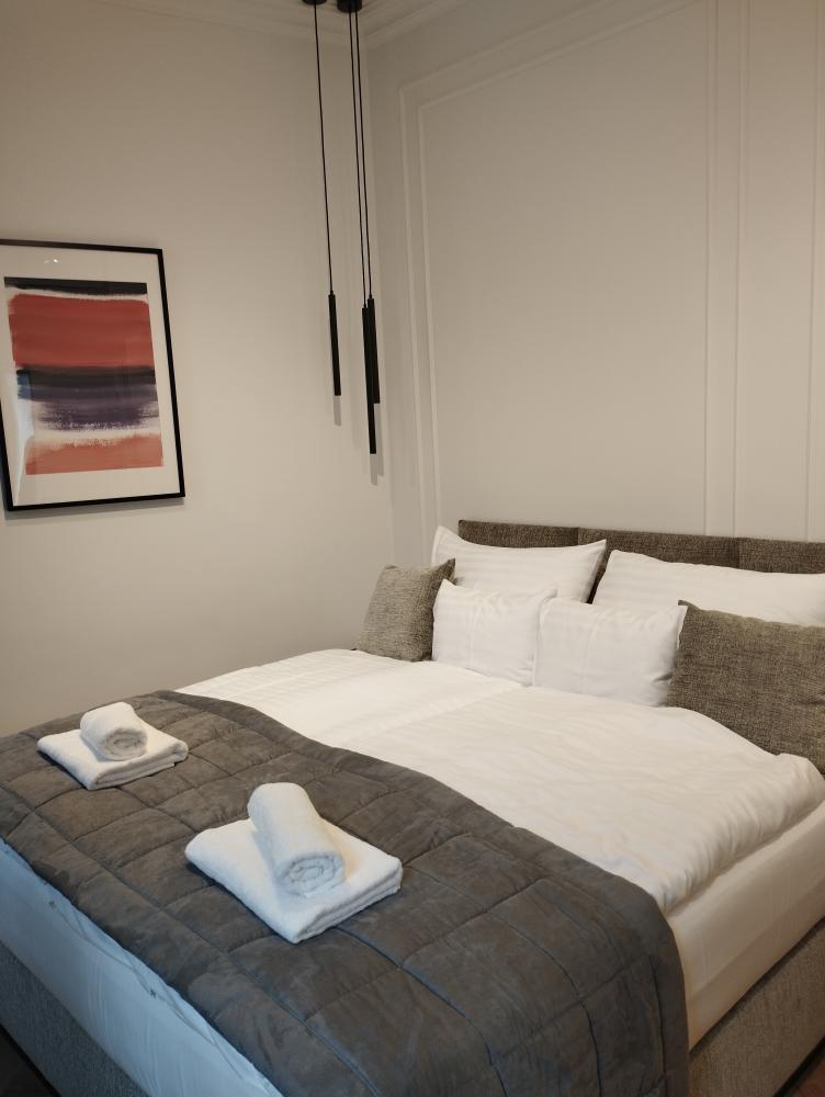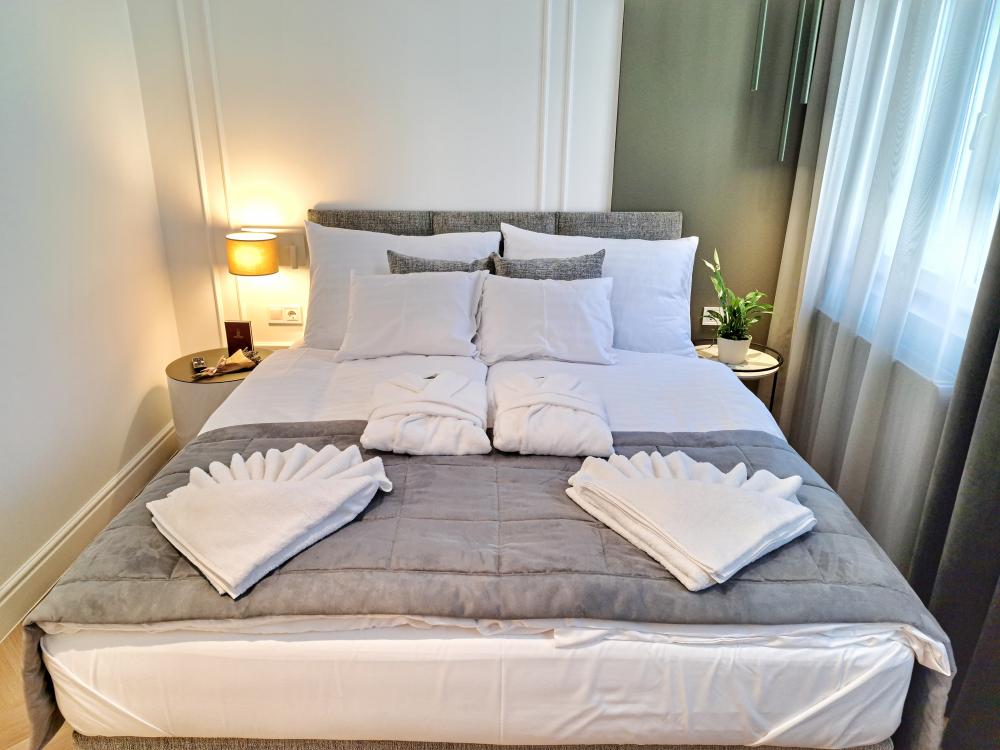 Our Premium Suites have separated bedrooms and living rooms with modern mechanized kitchenettes. In the spacious living room there is a two-person pull-out sofa, so it can be comfortable for four people. Depending on the location, you can enjoy a beautiful view of the romantic Mosoni-Danube promenade, the pedestrian street of the historic old town or the most beautiful baroque statue in the middle of the Gutenberg square, the Ark of the Covenant statue.