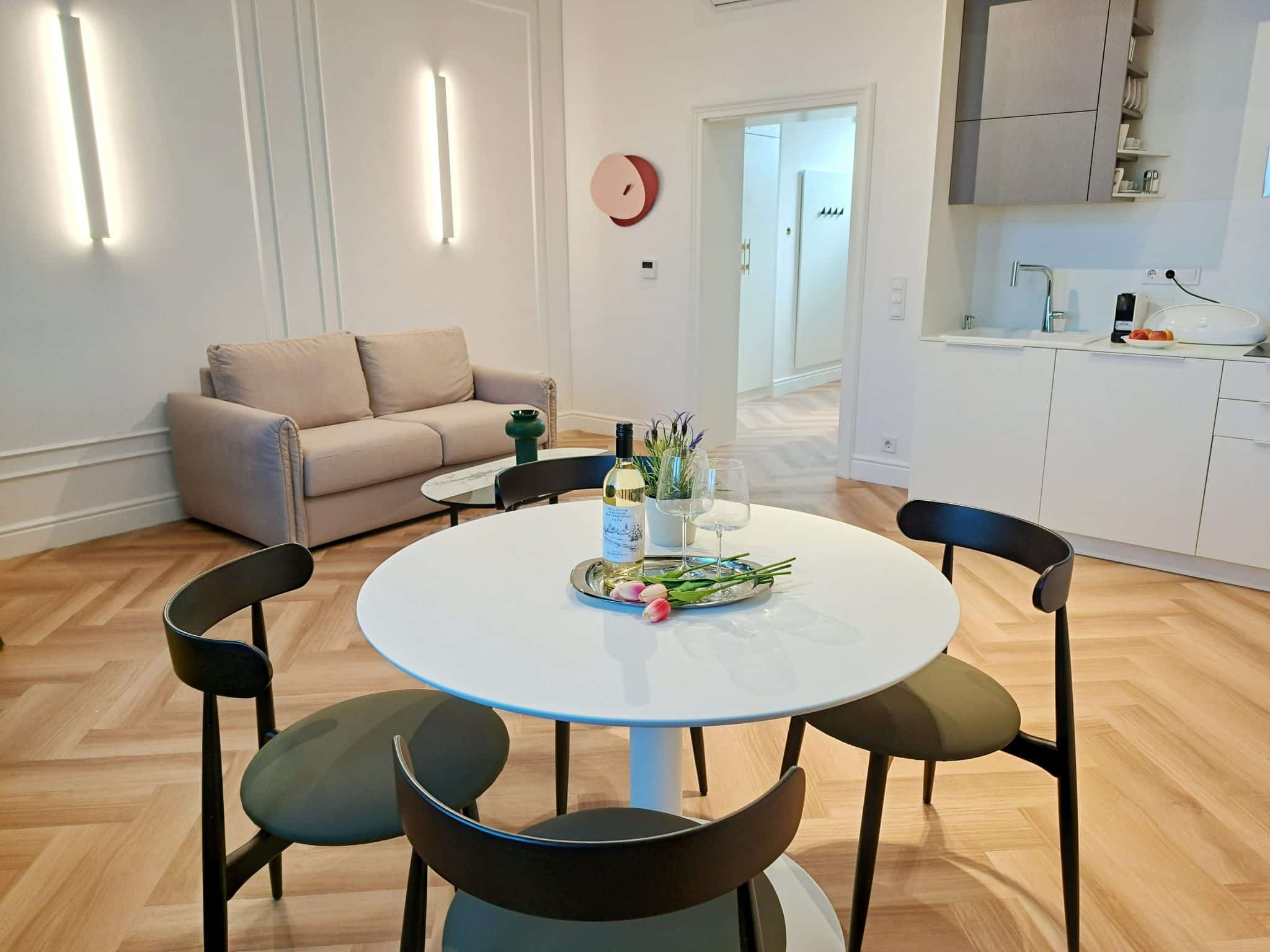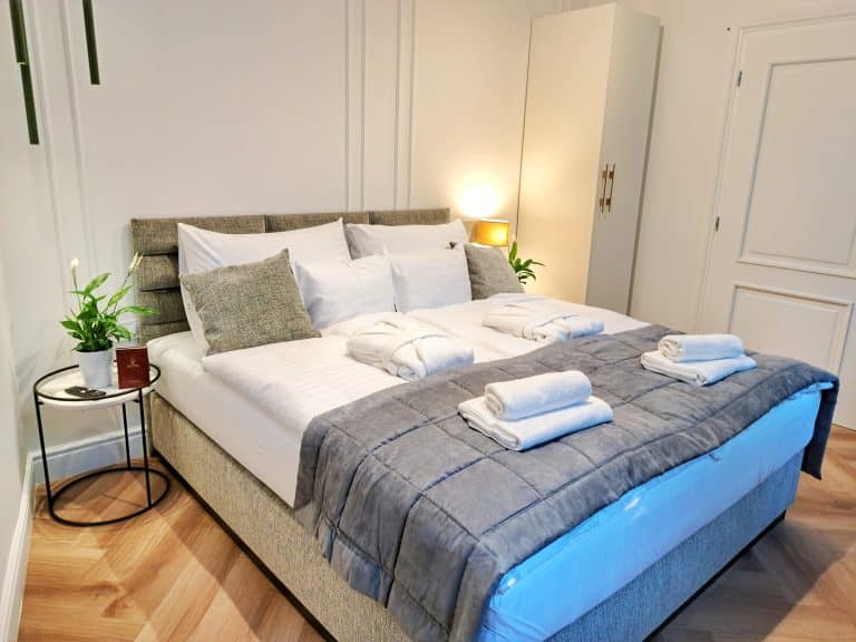 Prémium lakosztályaink különálló hálószobával, és modern, gépesített konyhasarokkal ellátott nappalival rendelkeznek. A tágas nappaliban található egy kétszemélyes kihúzható kanapé is, így az apartman négy fő kényelmes elhelyezésére is alkalmas. Elhelyezkedésétől függően csodálatos kilátás nyílik a romantikus Mosoni-Duna sétányra, a történelmi belváros sétálóutcájára, valamint a város legszebb barokk szobrára, a Frigyláda-szoborra.