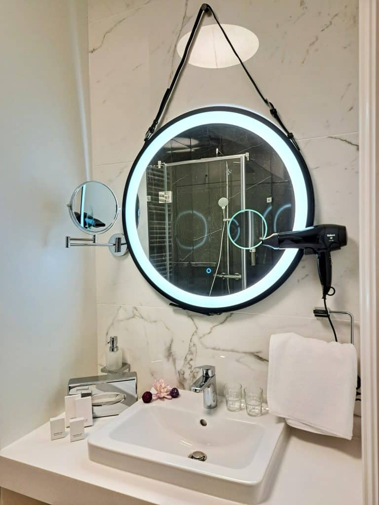 Nem doháynzó, fürdőkád/zuhanykabin; síkképernyős televízió; gépesített, felszerelt konyha; WiFi; önállóan szabályozható légkondíciónáló; hajszárító; piperecikkek; fürdőköpeny; laptop méretű széf